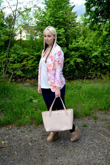 Today there's another outfit of the day from me. All pieces are older and therefore they aren't available anymore. Nevertheless, these are those typical pieces, which are in the shops every year. If you like something, I'm sure you'll find it somewhere in a similar look. I really like the colors for spring, but I mean I like pink always. ;) When you have read my christmaspresentspost then you know that I got a bag from Tory Burch. She's so lovely and even practically. You can put a lot of stuff in it and it has a xtra pocket for your laptop (I think it's for this). You can combine the colors easy, especially in spring. I hope you like it.